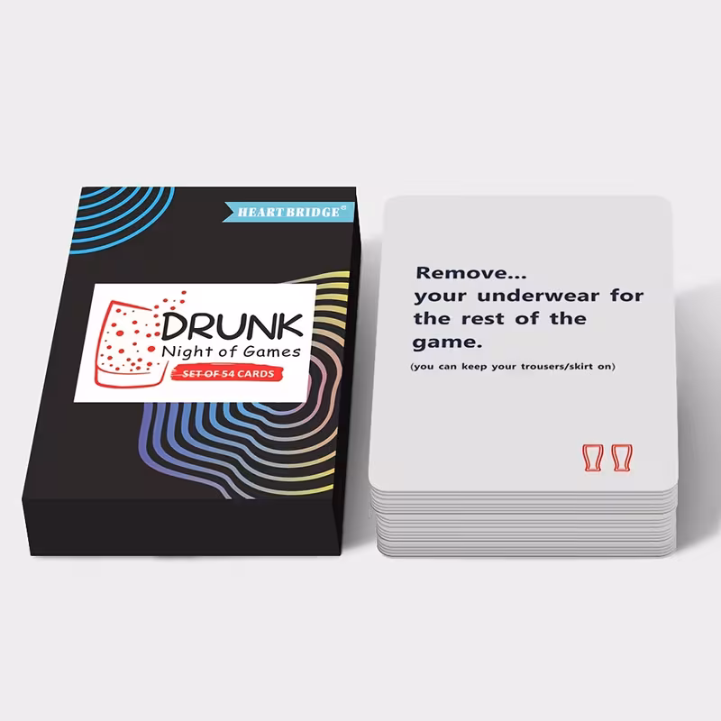 Breng spanning en plezier in jullie avonden met dit volwassen kaartspel. Het spel is ontworpen om interactie, humor en speelsheid te combineren, met kaarten die uitdagende opdrachten en speelse praatjes stimuleren. Perfect voor koppels, vrijgezellenfeesten of een gezellige avond thuis.